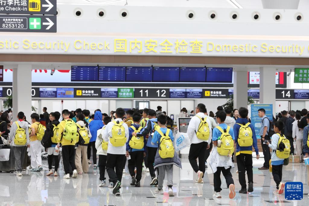 青少年研學(xué)團隊準備登機,參與甘肅省民航機場集團推出的研學(xué)活動。(受訪者供圖)