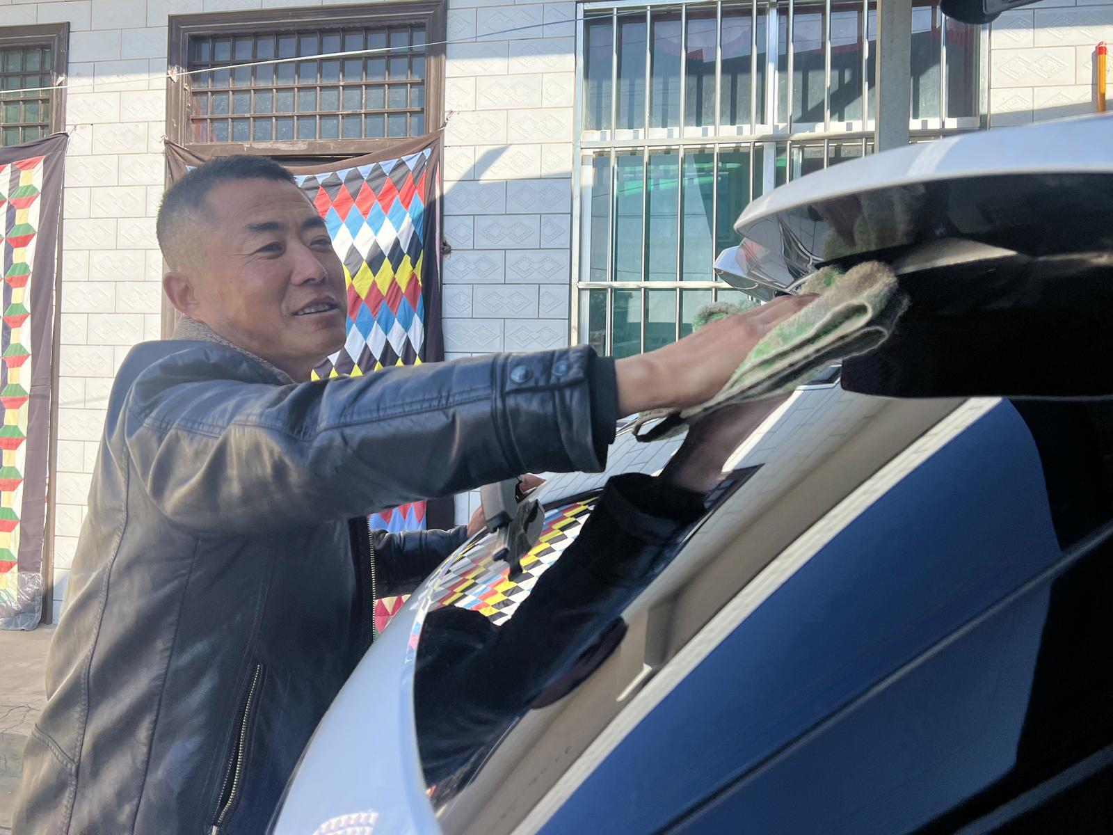 焦永峰正在擦自己買的新車。慶陽融媒記者王華攝